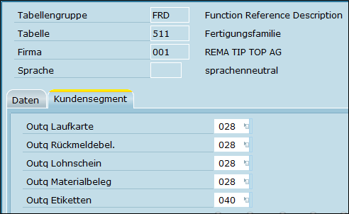Im Kundensegment der Tabelle zur Fertigungsfamilie wird je Fertigungspapier ein Drucker hinterlegt.