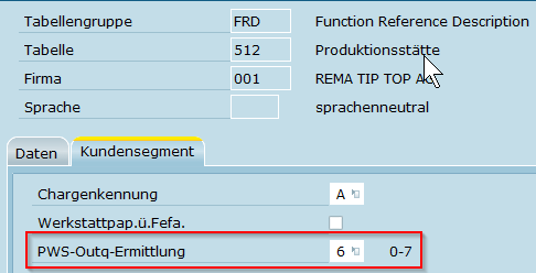 Im Kundensegment der Tabelle für Produktionsstätten wird die Nummer der Ermittlung der ersten Stufe hinterlegt.
