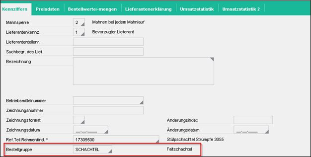 Im Lieferantenteilestamm gibt es ein neues Feld Bestellgruppe.