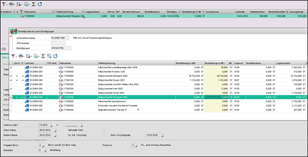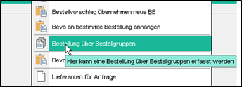 - In der Auflistung werden weitere Bestellvorschläge zu der gleichen Bestellgruppe vorgeschlagen