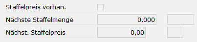 Hinweis / Tipp: In Bestellvorschlägen (Bevos) werden in der Lasche "Preise , Referenz" angezeigt, ob es sich um ein Staffelpreis handelt → Checkbox "Staffelpreis vorh." und was die nächste Staffelmenge ist → Feld "Nächste Staffelmenge" und was der nächste Staffelpreis ist → Feld "Nächst. Staffelpreis"