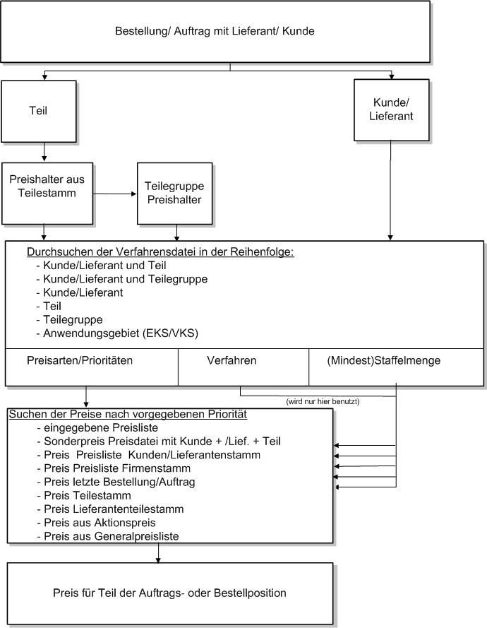 Wird in dieser Reihenfolge ein Preisermittlungsverfahren gefunden, so wird dies benutzt; Preisarten eines Verfahrens, die mit Priorität 0 belegt sind, bleiben unberücksichtigt.