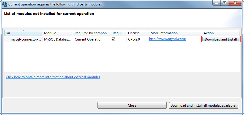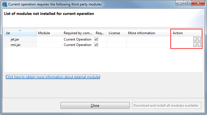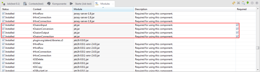 Werden auf einem Prozess externe JARs verwendet, die noch nicht in Talend Open Studio for Data Integration eingebunden sind, erfolgt die Installation auf ähnliche Art und Weise. Die Dateien können heruntergeladen werden.