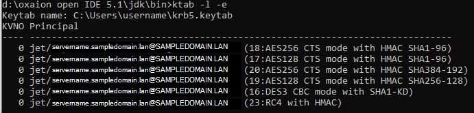 Zur Erzeugung der Keytab verwenden Sie bspw. unter Windows in der Kommandozeile (cmd.exe) das Java-Programm ktab.