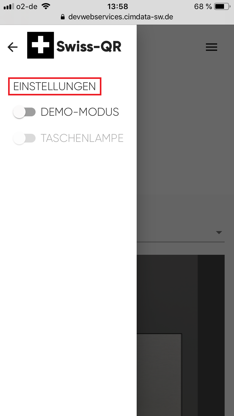 - Der Schalter "DEMO MODUS" ermöglicht das Testen von QR-Codes per Datei-Upload und ist für Anwender nicht weiter relevant