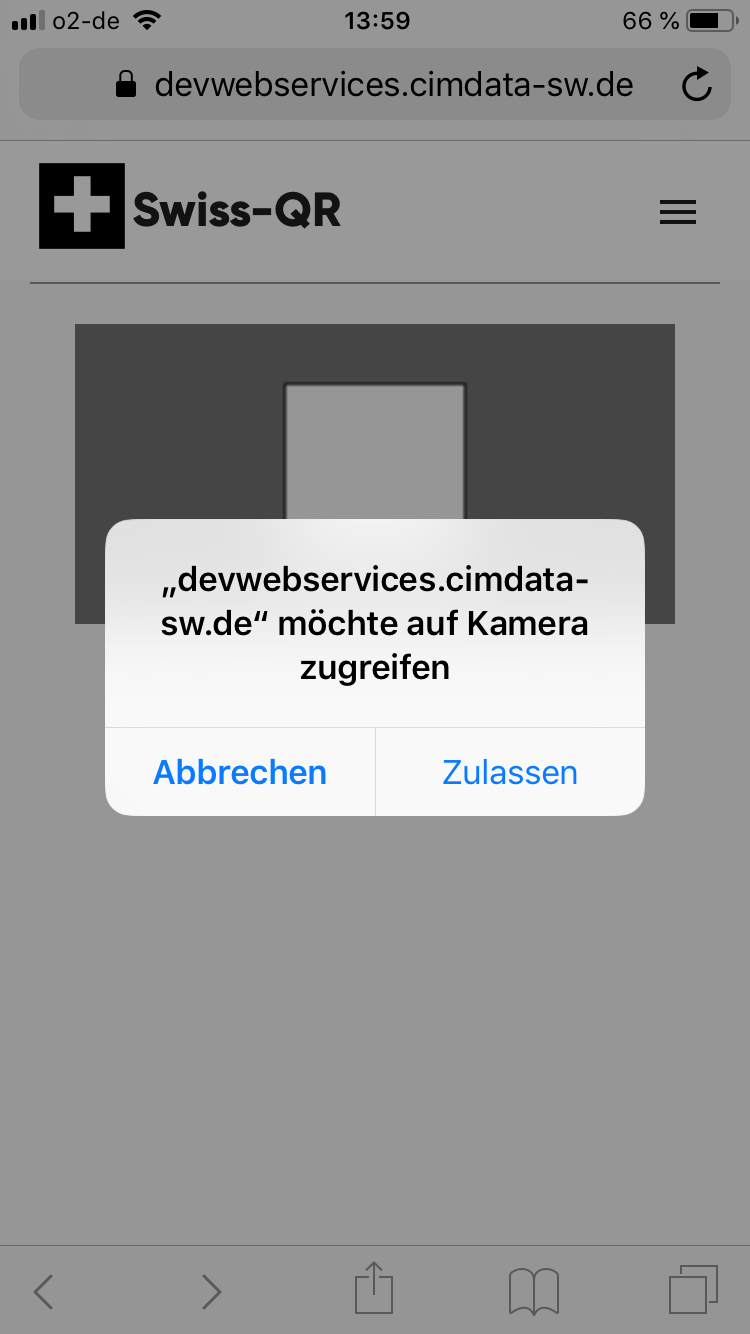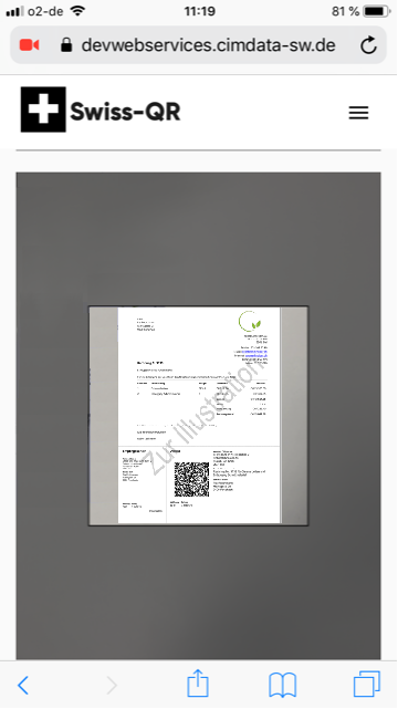 Die erfolgreich gestartete App verwendet nun die voreingestellte Kamera und sucht permanent nach QR-Codes zur Datenübernahme. Sobald man das Endgerät nahe genug an einen Swiss-QR-Code hält..