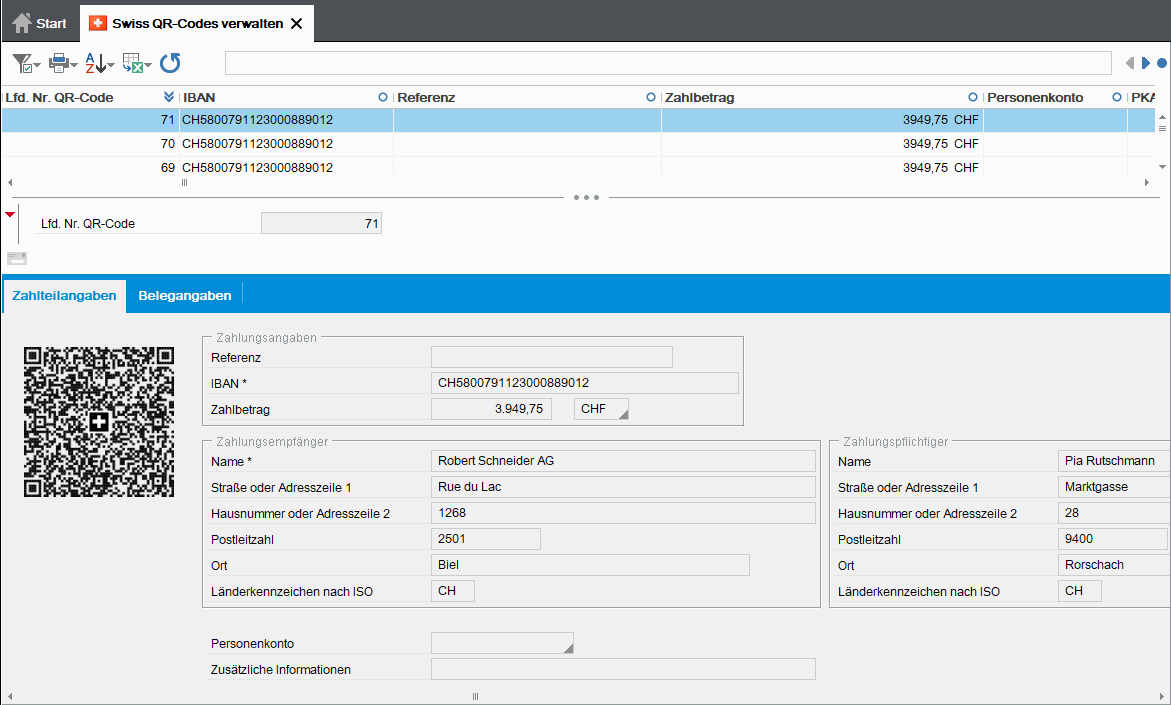 Die gescannten QR-Codes werden gesammelt im Programm "Swiss QR-Codes verwalten" (FB20284).