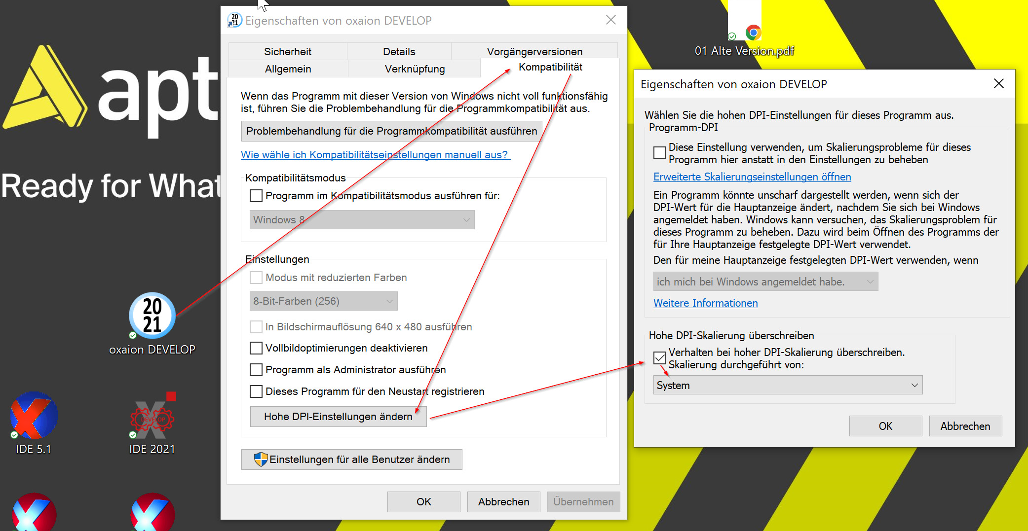 Dies kann durch das Setzen der Kompatibilitätseinstellungen unter Windows 10
