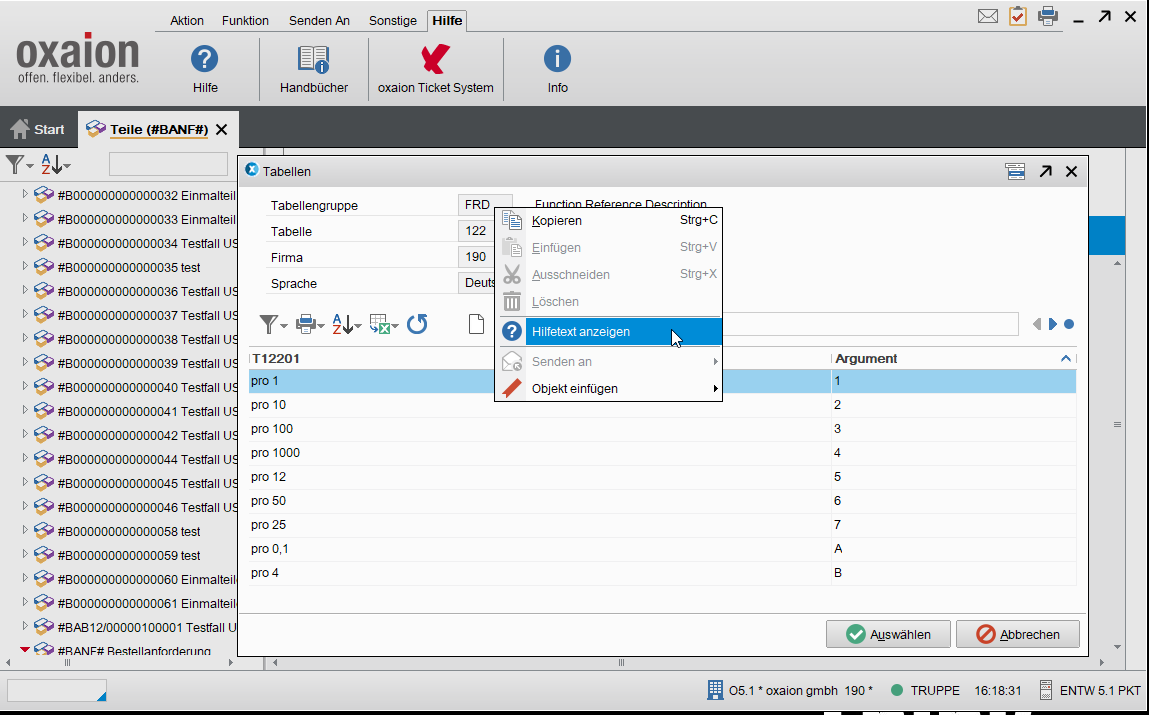Bildbeschreibung: Dokumentationsaufruf aus oxaion heraus via "Hilfetext anzeigen"-Kontextmenüeintrag