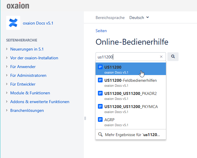 Somit ist es möglich, zu jedem Feld, jedem Programm und jeder Tabelle in oxaion die benötigten Informationen zu recherchieren.