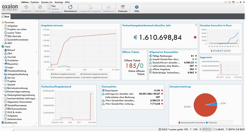 oxaion Dashboards dienen dazu, rollenspezifische Informationen auf einen Blick bereitzustellen.