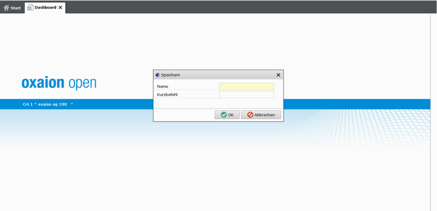 Im Eingabefeld müssen ein Name und ein Kurzbefehl eingegeben werden. Der Name ist der Titel der Programmlasche des Dashboards. Der Kurzbefehl muss ein eindeutiger Name sein, mit dem das Dashboard aus der Befehlszeile aufgerufen werden kann.
