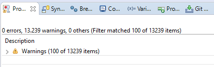 Die Problem-Anzeige der IDE darf ausschließlich Warnungen, aber keinerlei Fehler enthalten vor dem Beginn des Patch-Prozesses: