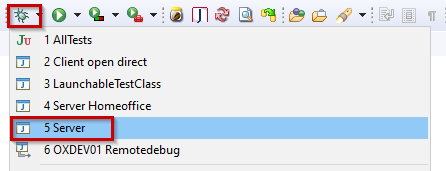 Der Server kann mittels eines sogenannten Launchers in der IDE gestartet werden: