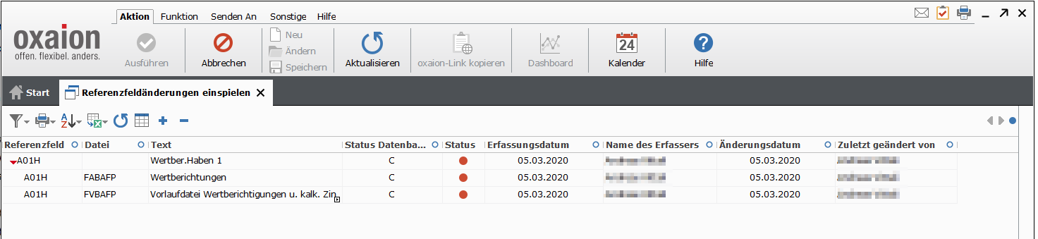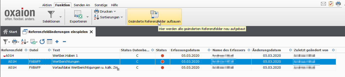 Sind alle geänderten Referenzfelder importiert und alle Tabellen aktualisiert kann fortgefahren werden mit dem nächsten Punkt.