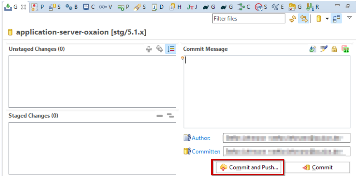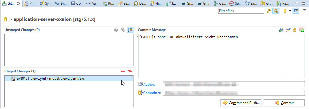 Nun kann die Git-Staging-Ansicht der IDE genutzt werden um die Änderungen an den Quellen zu veröffentlichen.