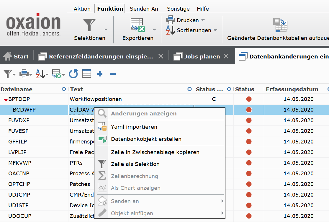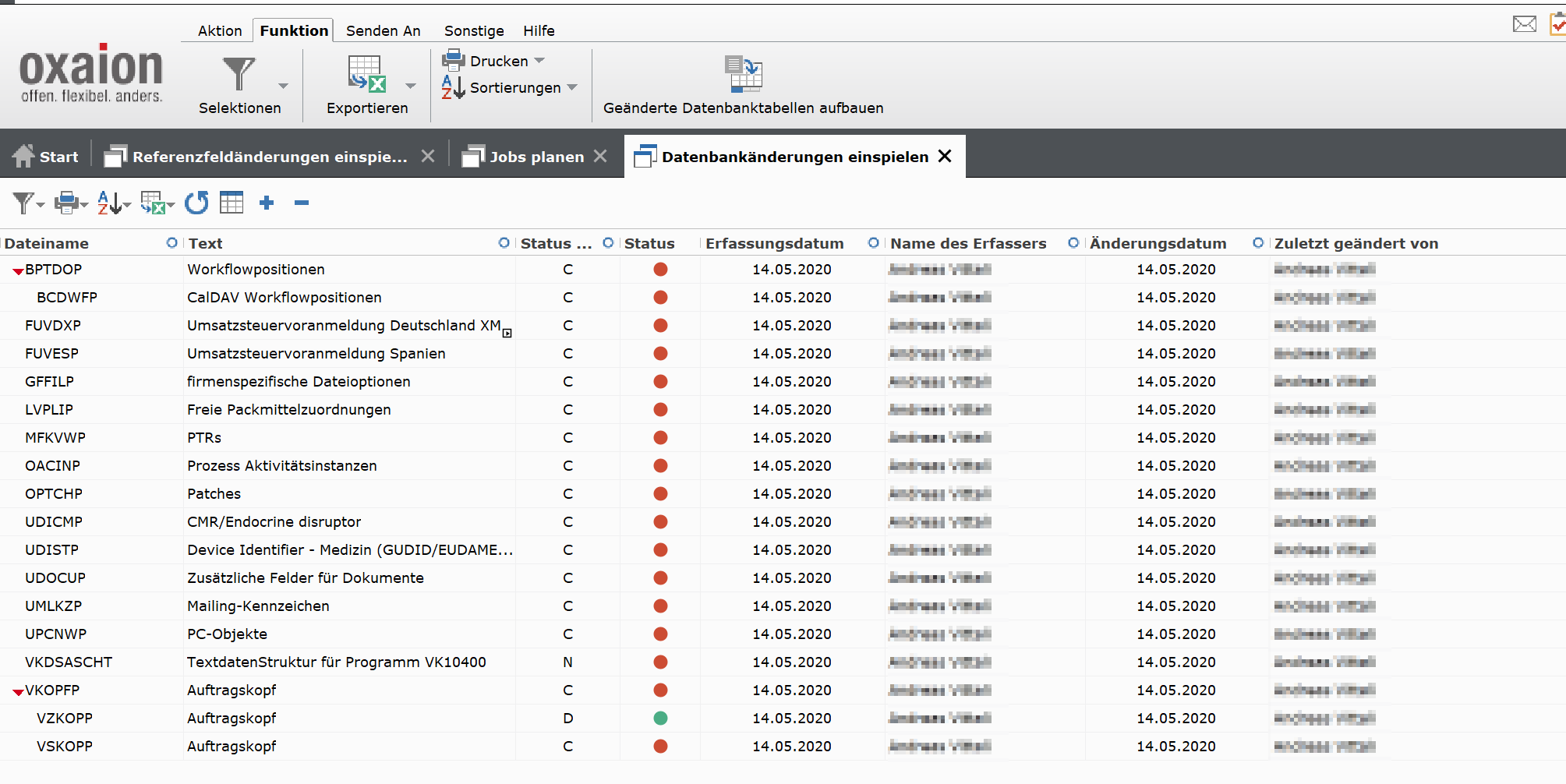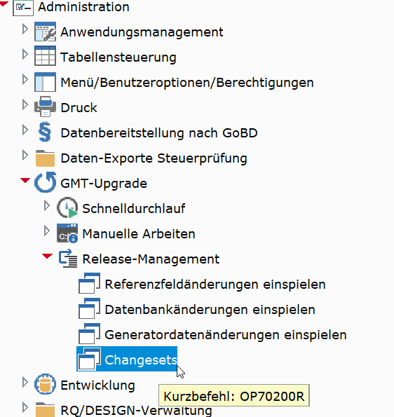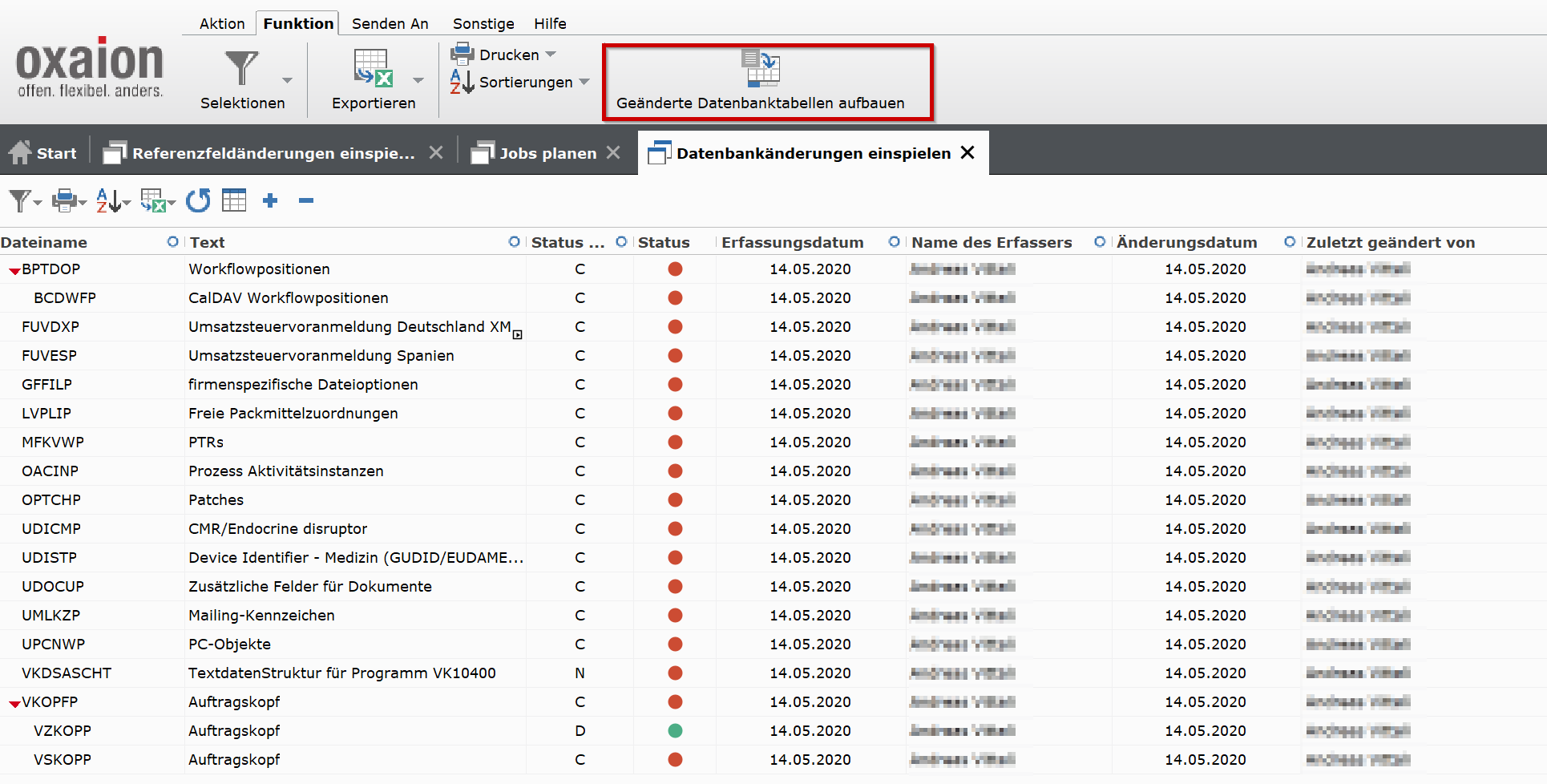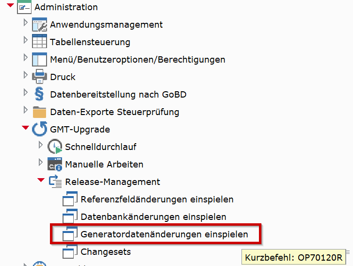 Die Änderungen an den Datenbank-Tabellen werden mittels des Programmes OP70110 "Datenbankänderungen einspielen" übernommen.