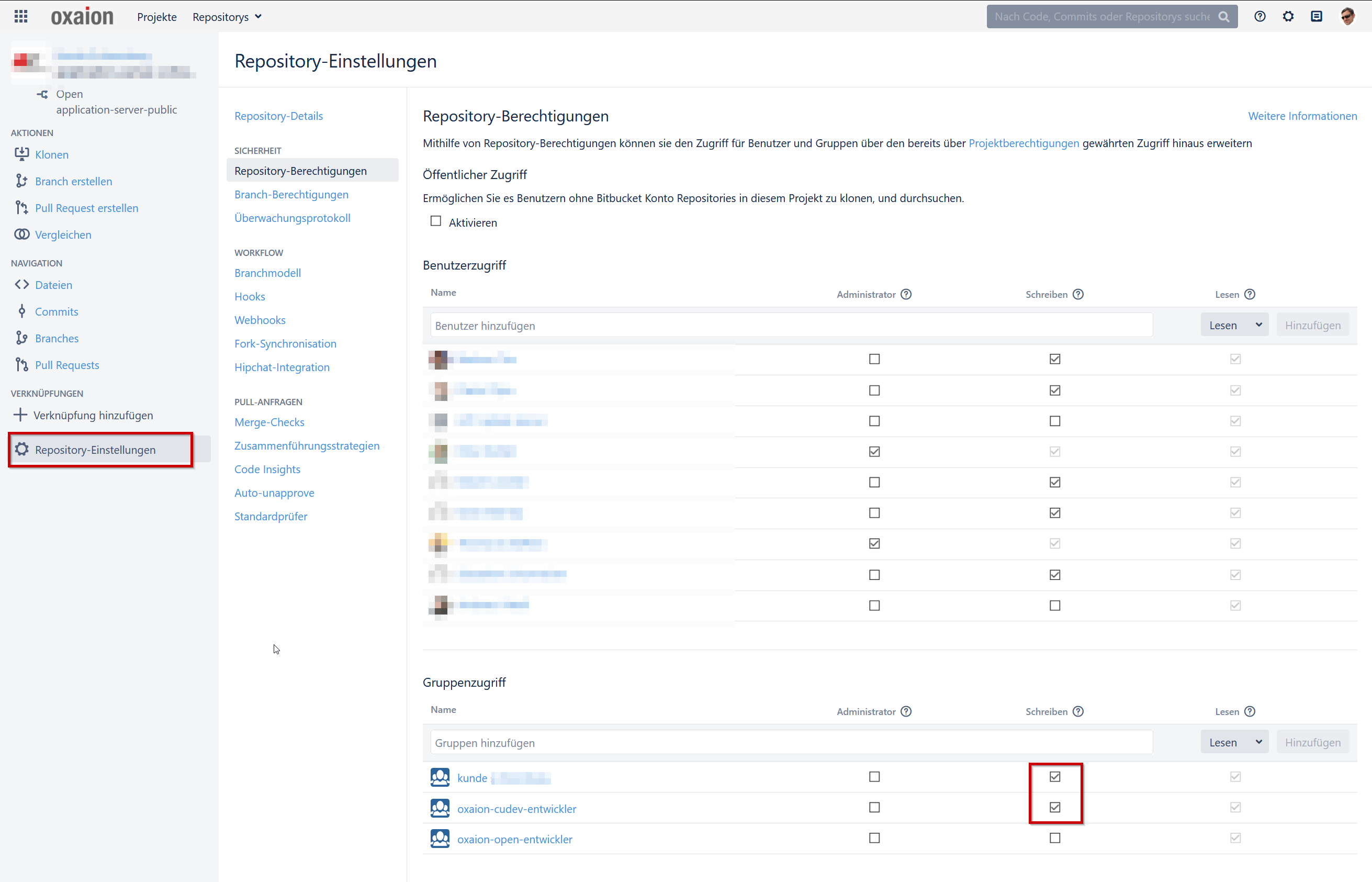Um unnötige Konflikte im Mischprozess durch, von anderen Mitarbeiter parallel veröffentlichte, Änderungen zu vermeiden sollte der entsprechende Zweig oder das gesamte Repository in Bitbucket für Schreibzugriffe gesperrt werden.