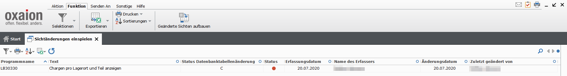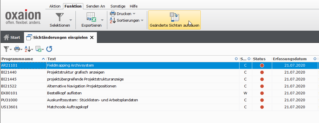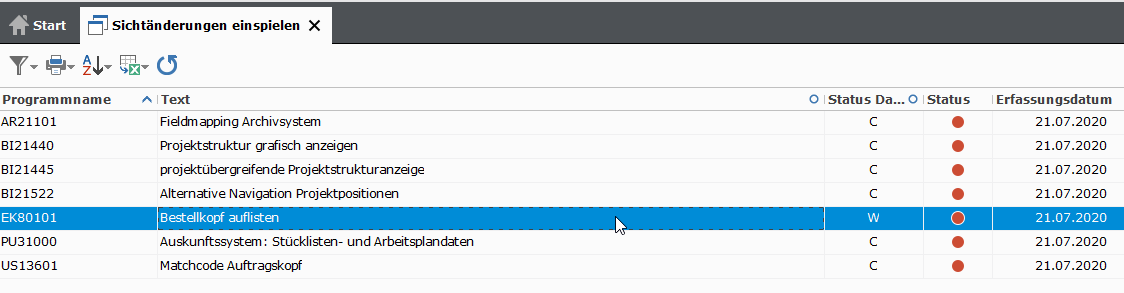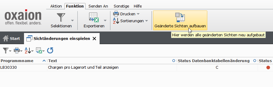 Die zu aktualisierendenen Sichten sind im Programm OP70130 "Sichtänderungen einspielen" mit dem Status "W" markiert.