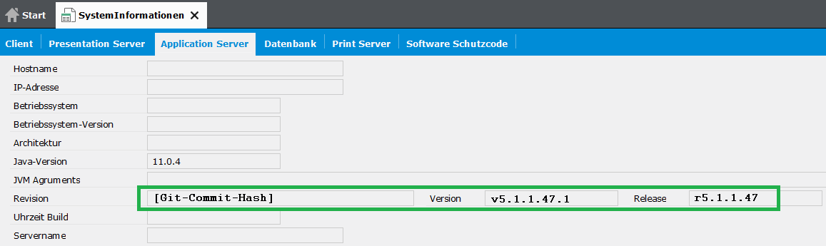 ab Version 5.1.1.47 zeigt die SYSINFO folgende Informationen über die Version des open Application Servers:
