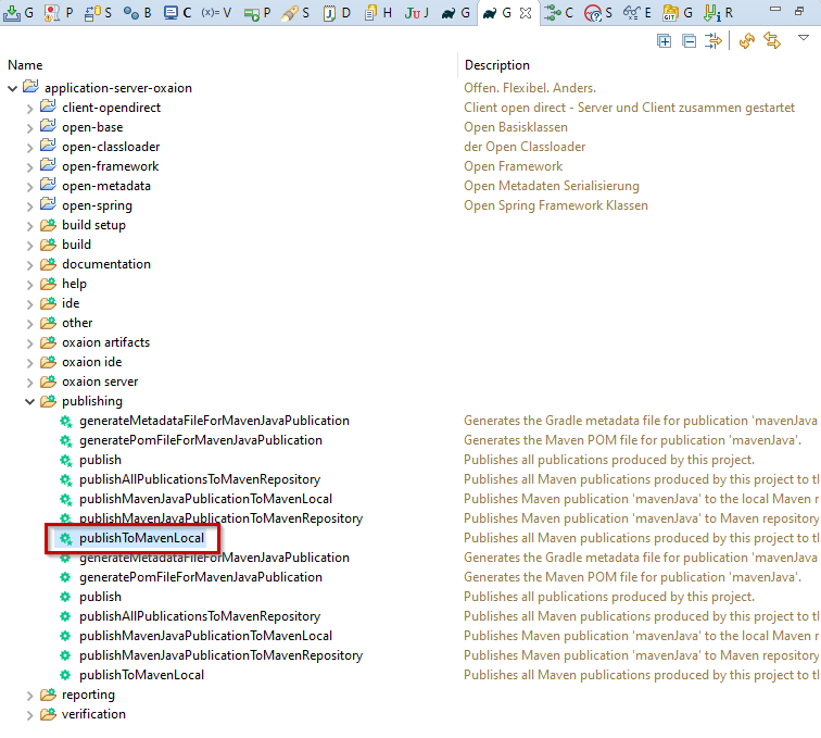 Dazu muss der Task "deployToMavenLocal" in der Gradle Tasks View aufgerufen werden: