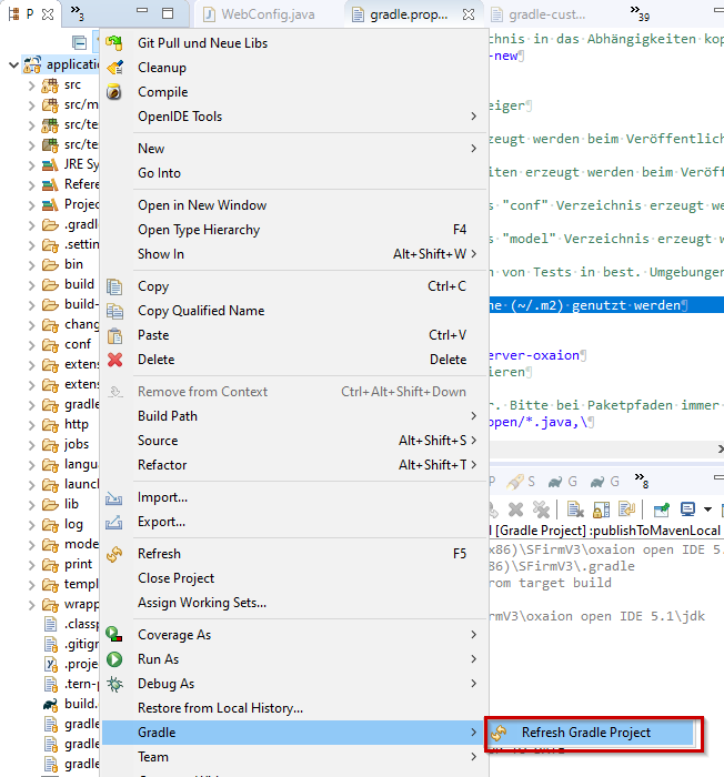 Danach muss noch ein Gradle Refresh Project per Rechtsklick auf dem Projekt ausgeführt werden: