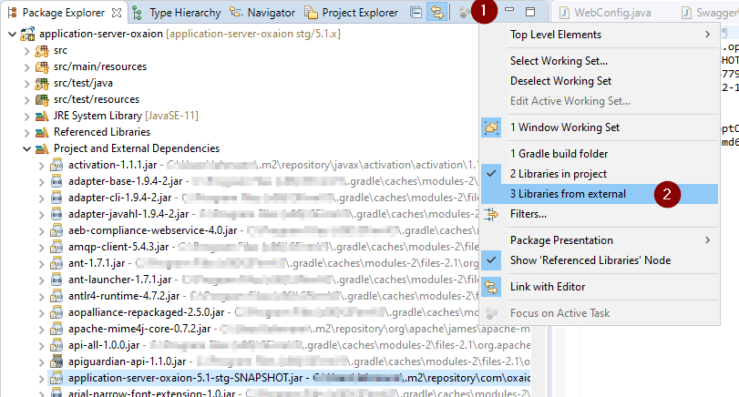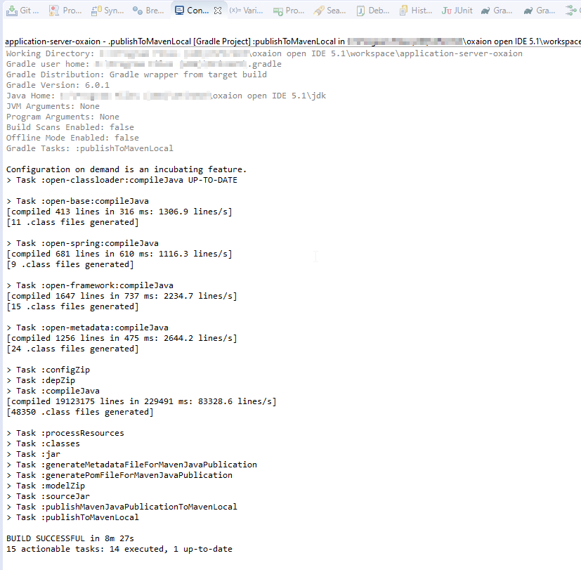 Um den gerade frisch gebauten Applikationsserver als Abhängigkeit in der IDE zu nutzen muss nun in der gradle-customer.properties Datei der Wert useMavenLocal auf true geändert werden.