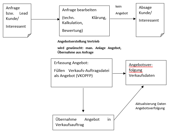 Wird die Anfrage positiv beurteilt, dann erfolgt die Abgabe eines Angebotes. Es lassen sich Angebote für Serviceaufträge (Dienstleistungen, Reparaturen), Vermietungen und Verkaufsaufträge unterscheiden.