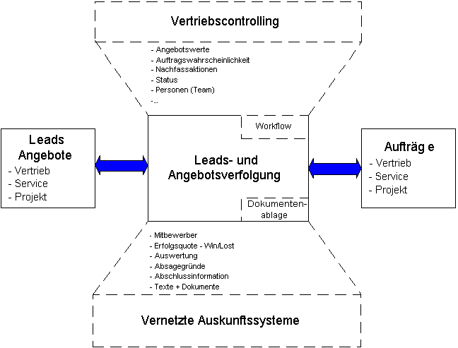 Für spätere Auswertungen werden Daten wie Mitbewerber, Grund der Ablehnung, Auftragswahrscheinlichkeit, Auftragswert und andere geführt.
