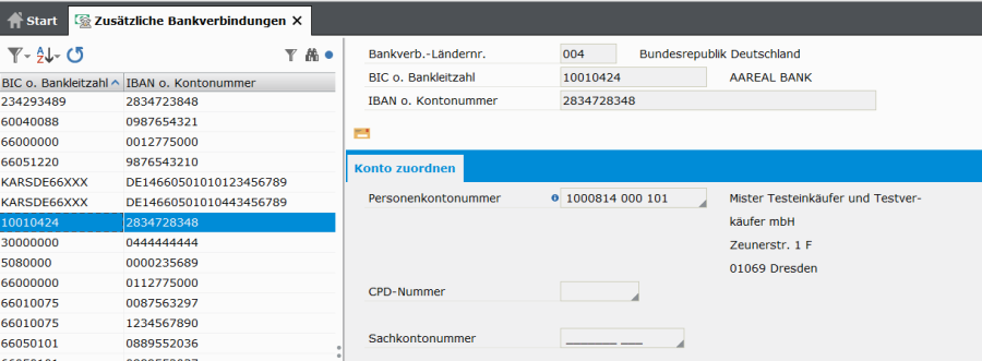 Es können somit mehrere bzw. zusätzliche Bankverbindungen je Personenkonto im System hinterlegt und bei späteren Kontenbewegungen, mit einer der Bankverbindung, der Auftraggeber automatisch ermittelt werden.