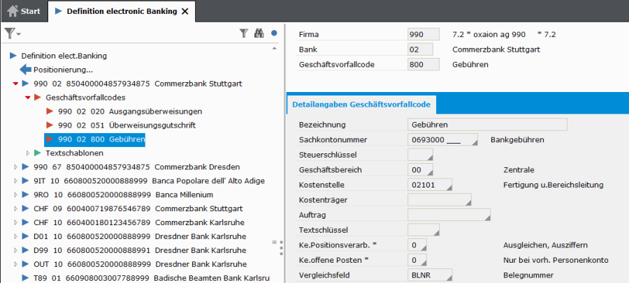 Die Geschäftsvorfallcodes können entsprechend je Mandant und Bank mit einer Bezeichnung erfasst werden.