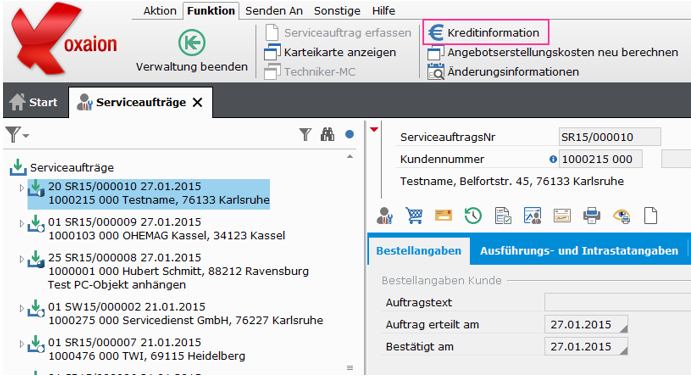 Die Maske wird in der Aktionsleiste über Funktion und anschließend 'Kreditinformation' aufgerufen.