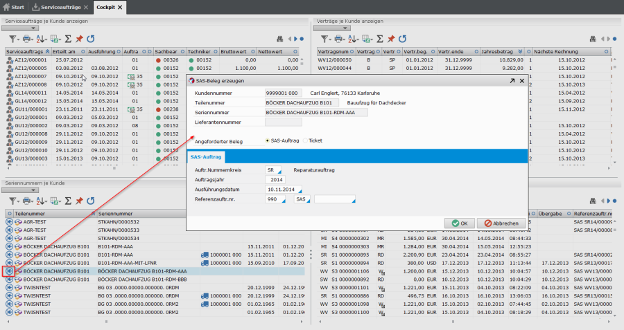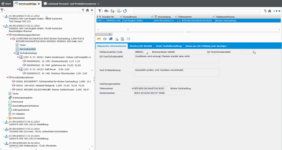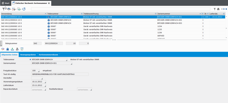 - Bei Wartungs- und Reparaturaufträgen wird das Datum der letzten Wartung bzw. das Datum der letzten Reparatur in der Seriennummerndatei aktualisiert. Ebenso erfolgt eine Aktualisierung der Seriennummerndatei bzgl. ausgetauschter Teile etc.