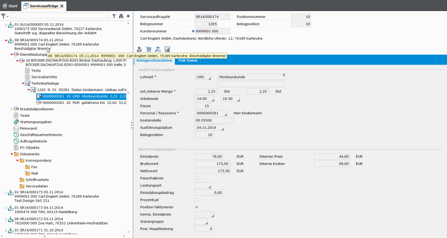 Die Auftragspositionen müssen, um fakturiert werden zu können, mit Belegnummer zurückgemeldet werden. Aufgrund des Pauschalpreiskennzeichens werden die Positionspreise nicht durch die tatsächlich erbrachten Leistungen überschrieben. Die Kosten werden allerdings aus den tatsächlich erbrachten Leistungen ermittelt.