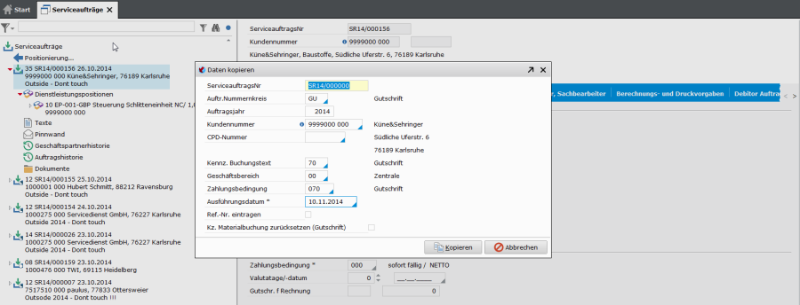 Erfassung von Aufträgen durch kopieren