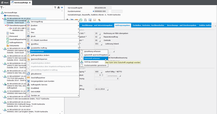 - (1) Gutschriften, die für Wartungsverträge, Mietverträge oder Dauerverträge erstellt werden. Referenz ist dann der jeweilige Vertrag und kein Auftrag