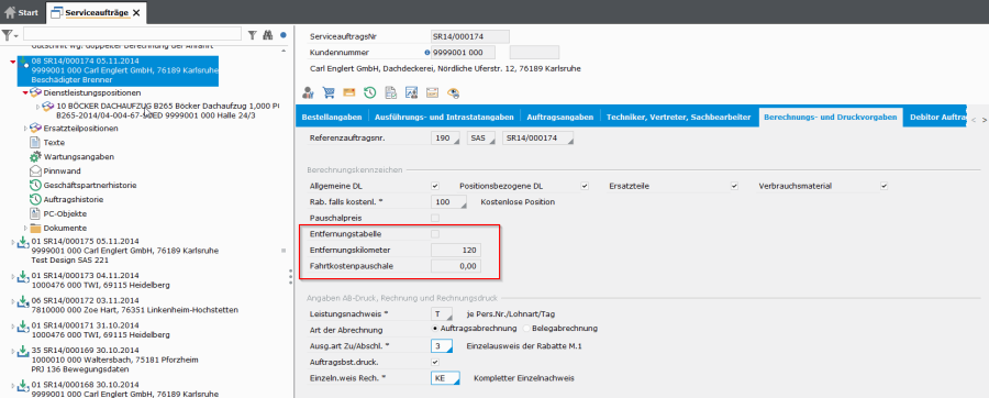 Für eine schnelle Angebots- und Auftragserstellung können für eine Dienstleistungsposition Abrechnungsdaten vordefiniert werden.