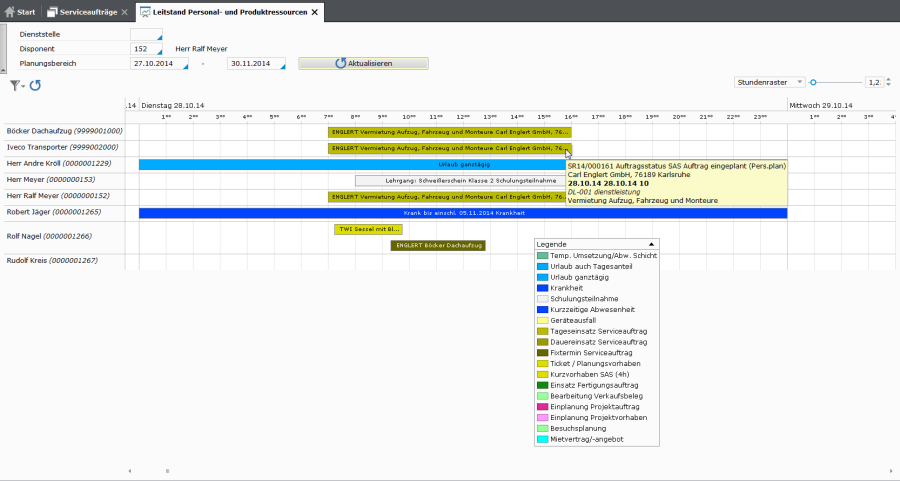 Die Auswahl eines zu bearbeitenden Auftrags kann nach verschiedenen Kriterien erfolgen. Hierzu gibt es die Filterfunktion, die eine komfortable Suche ermöglicht.