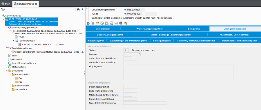 - Auftragsnummer, in der Regel keine Eingabe, Nummer wird maschinell erzeugt