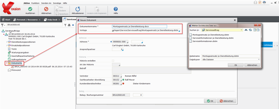 Neben der unten beschriebenen Erzeugung aus Wartungsverträgen ist in oxaion eine Help Desk Funktion integriert.
