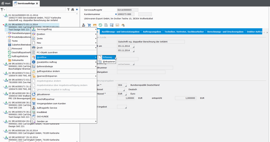 Es besteht die Möglichkeit, für Aufträge mit besonderer Abwicklung einen Workflow zu hinterlegen.