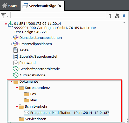 Werden bei Datenfreigabe alle Prüfungen zur Erstellung eines Tickets bzw. eines Auftrags mit Dienstleistungsposition erfolgreich durchlaufen, wird der gewünschte Beleg erstellt und direkt in den jeweiligen Explorer zur weiteren Bearbeitung verzweigt.