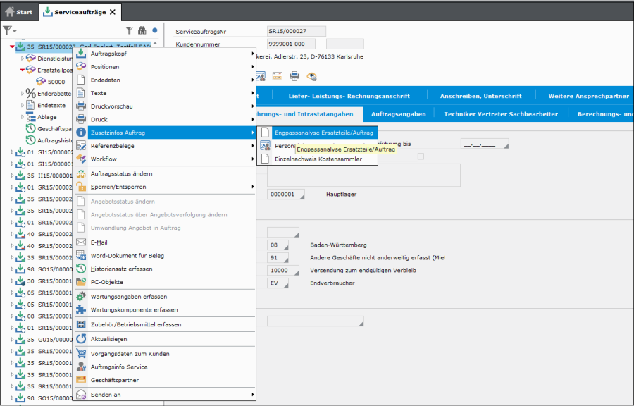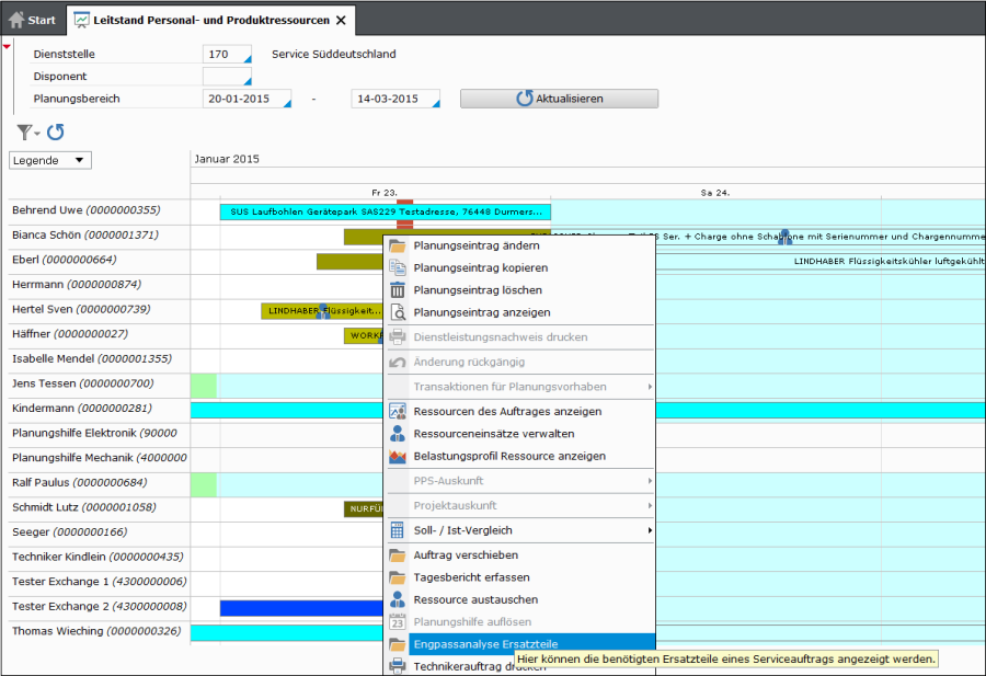 Eine Analyse kann im Serviceauftrag und in Bereichen der Personaleinsatzplanung erfolgen. Sie wird stets neu zur Laufzeit des Programms ermittelt.