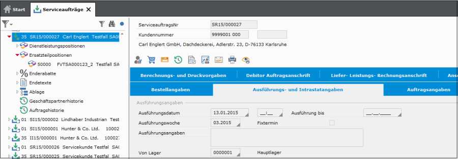 Im Auftragskopf des Serviceauftrags wird das Datum der Ausführung als Bedarfsdatum des Ersatzteils (geplante Lieferung an Kunde) herangezogen und darf dort überschrieben werden. Der Lagerort aus dem Auftragskopf gilt ebenfalls als Unterlassungswert für die Ersatzteilposition.
