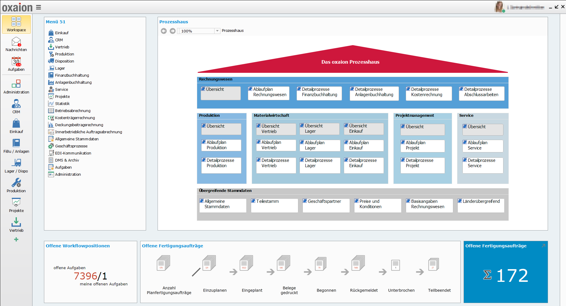 Nach dem Start von oxaion Crossfeed wird der persönliche „Workspace" geöffnet. Dieser kann vom Benutzer individuell eingerichtet werden.