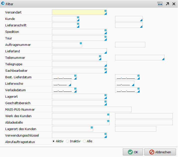 Hierüber steuern Sie, ob Sie nur Informationen zu Abrufaufträgen, Einzelaufträgen oder allen sehen möchten.