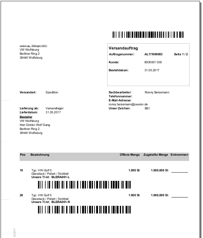 Ergebnis 1: Auslieferungsauftrag ( Versandauftrag )
