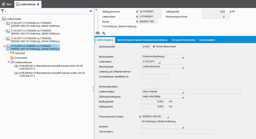 - Zu beachten ist, dass ein Lieferschein nur erstellt werden kann, wenn ein Auftrag vorhanden ist.