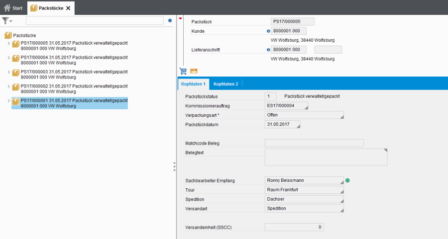 - Dazu werden Packstücke erstellt bzw. die Positionen bereits bestehenden, und noch nicht abgeschlossenen Packstücken zugeordnet.