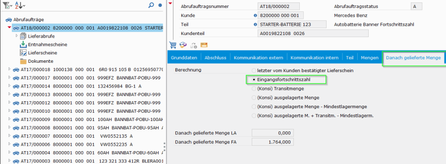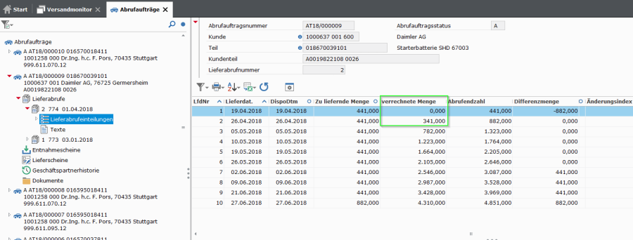 Wie bereits erwähnt, wird vom Vorgänger auf die aktuelle Abrufeinteilung verglichen und gerechnet
